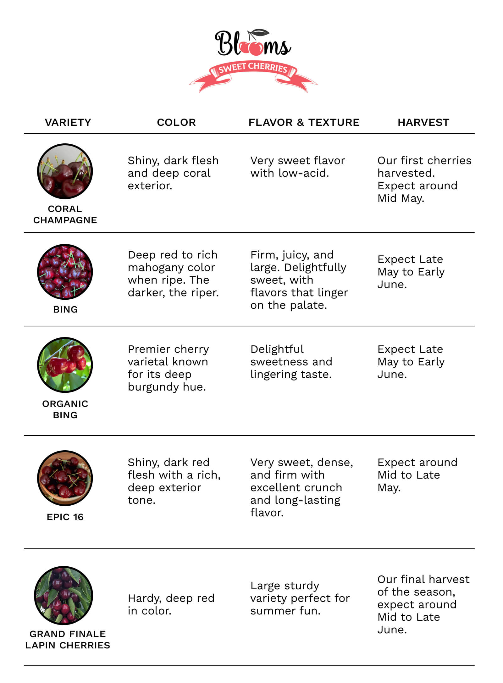 Cherry season is short and our customers tell us all the time that they wish they bought earlier and often. Sign up below and you'll be the first to know when cherries are available again for purchase.